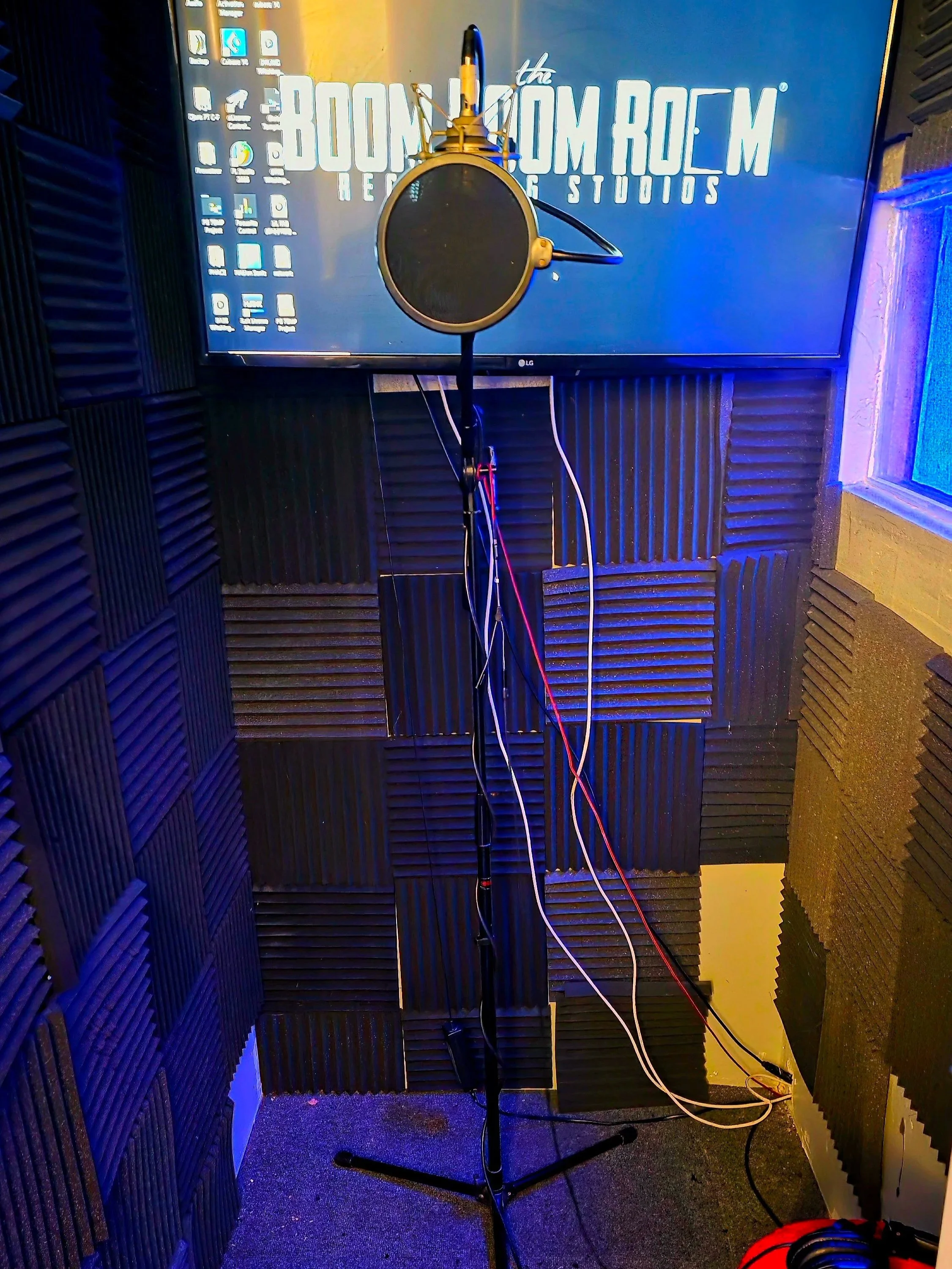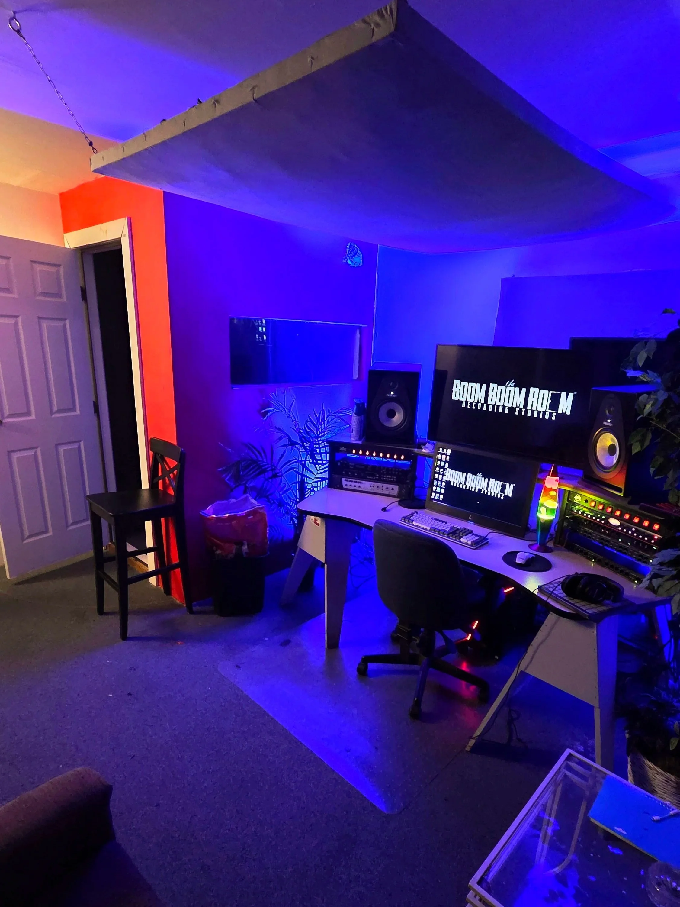Pro Tools, Industry Plugins (Waves, Fabfilter, Softube, Alesis, etc.) Neumann TLM 301 & TLM 49 Microphones, 8 Inch Samson Monitors, Presonus Studio Channel Pre-Amp